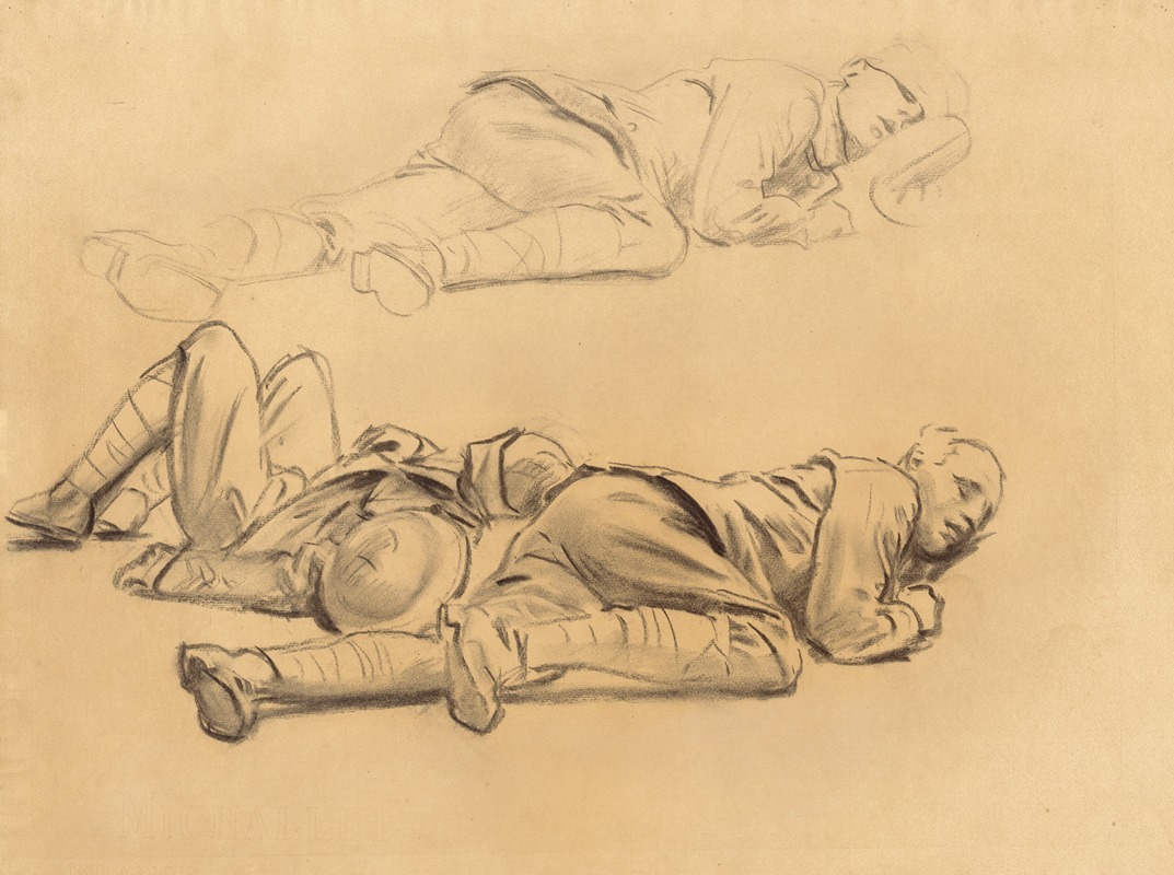 John Singer Sargent's Studies for ‘Gassed’ II is a preparatory work created by the renowned American artist as part of his process for completing his monumental painting Gassed (1919). The final painting, commissioned by the British War Memorials Committee, depicts the aftermath of a mustard gas attack during World War I and is considered one of Sargent's most significant contributions to war art.