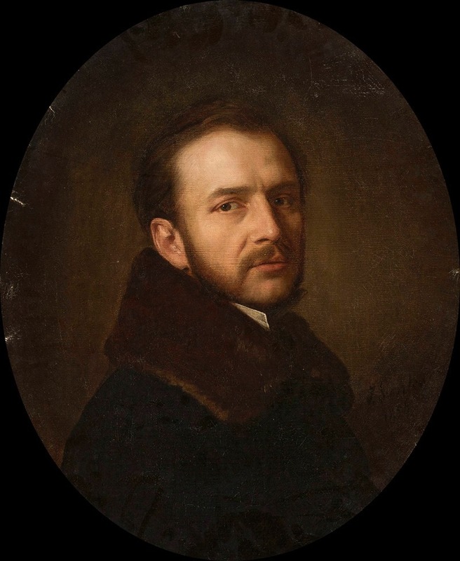 "Portrait of a Man" is a painting by the Polish artist Józef Simmler, who was known for his realistic and detailed portraiture. Józef Simmler was born on March 14, 1823, in Warsaw, Poland, and he became one of the most prominent Polish painters of the 19th century. He studied art in various European cities, including Dresden, Munich, and Paris, which influenced his style and technique.