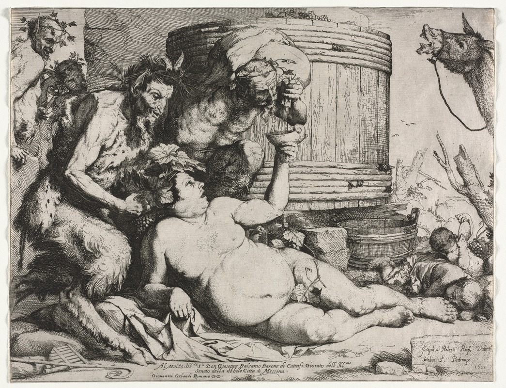 Jusepe de Ribera, a prominent Spanish painter and printmaker of the 17th century, is known for his dramatic and realistic depictions of religious and mythological subjects. One of his notable works is the painting "Silenus," which exemplifies his mastery in capturing the human form and emotion with striking realism and intensity.