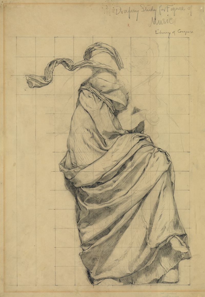 The "Drapery Study for Figure of Music" is a testament to Kenyon Cox's dedication to his craft and his commitment to the ideals of academic art. It reflects the meticulous preparation and attention to detail that characterized his approach to art-making, as well as his ability to convey beauty and elegance through the study of form and drapery.