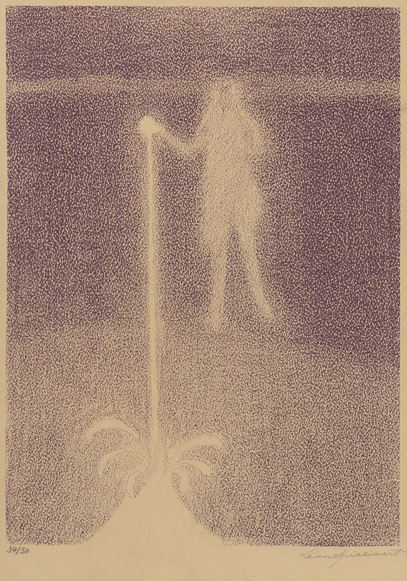 Léon Spilliaert's De verschijning (translated as The Apparition) is a painting created by the Belgian Symbolist artist Léon Spilliaert. Spilliaert, born in Ostend in 1881, is known for his introspective and often haunting works that explore themes of solitude, existential reflection, and the interplay between light and shadow. His art is typically characterized by its moody atmosphere, minimalist composition, and a sense of psychological depth.