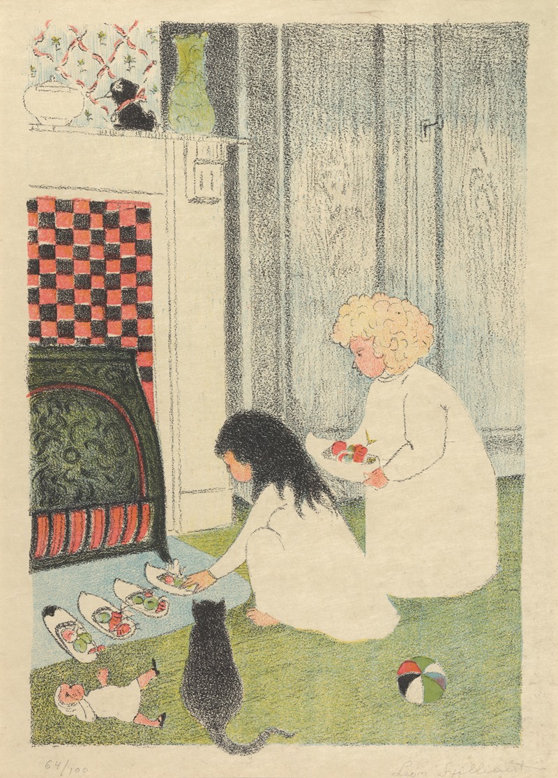 Spilliaert's work is often noted for its psychological depth and the way it captures the intangible aspects of human experience. His ability to convey mood and emotion through composition and color is evident in this painting, as he transforms a simple domestic scene into a moment of quiet reflection. The painting invites viewers to engage with the cultural and emotional layers embedded within the tradition of Saint Nicholas Day.