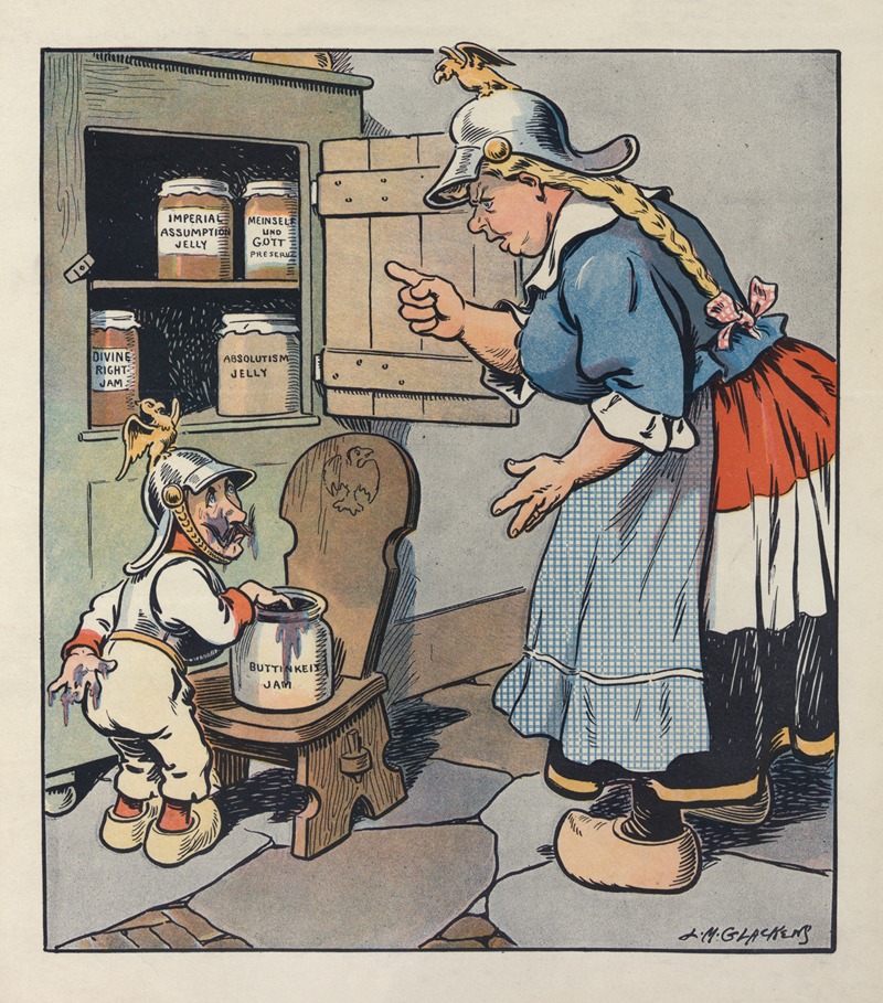 In summary, while specific details about "In the German Jam Closet" are scarce, Louis Glackens remains an important figure in early American illustration and animation. His work reflects the cultural and artistic trends of his time, characterized by humor, satire, and a keen observation of society. Further research into archives and collections may one day shed more light on this particular piece and its place within Glackens' broader body of work.