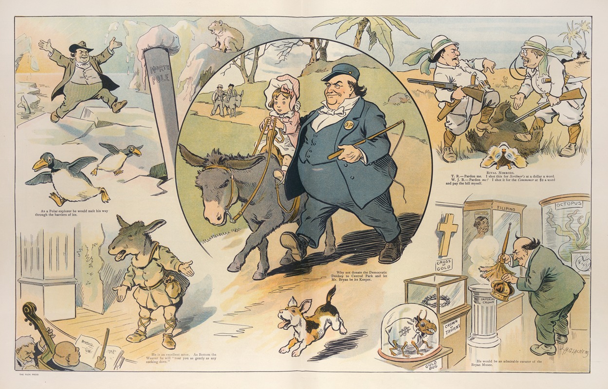 Glackens' cartoon is a satirical piece that reflects the public perception and political controversies surrounding Bryan during his career. Political cartoons of this era were a popular medium for commentary on political figures and events, often using humor and exaggeration to convey their messages. Glackens, like many cartoonists of his time, employed these techniques to engage the audience and provoke thought about the political issues of the day.