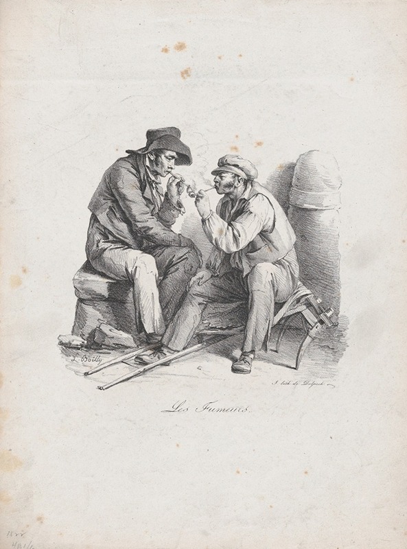 This particular painting, "The Smokers" (French: Les Fumeurs), portrays a group of men engaged in the act of smoking, a popular pastime during the period. The composition is intimate, focusing on the figures as they interact with one another. Boilly's skillful use of light and shadow highlights the textures of the smoke, the men's clothing, and their facial expressions, capturing a moment of camaraderie and leisure. The painting reflects Boilly's interest in human behavior and his ability to depict the subtleties of social interaction.