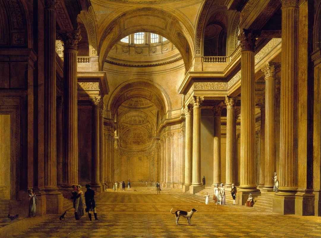 Louis Léopold Boilly's Vue Intérieure Du Panthéon is a painting created by the French artist Louis Léopold Boilly, who is renowned for his detailed and skillful depictions of everyday life in late 18th and early 19th-century France. Boilly was an accomplished painter and lithographer, known for his ability to capture intricate architectural details and the subtleties of human expression.