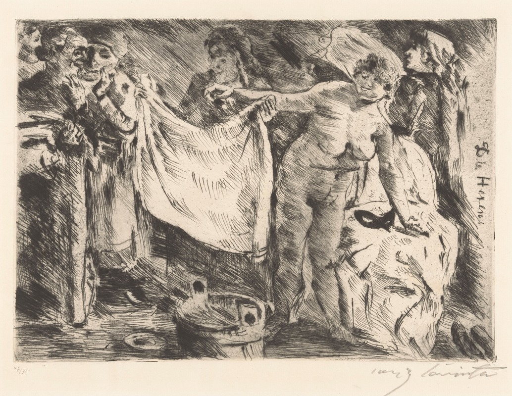 Lovis Corinth passed away on July 17, 1925, in Zandvoort, Netherlands. His legacy endures through his extensive body of work, which continues to be studied and appreciated for its innovative approach to form and emotion. "Groep vrouwen, waarvan één naakt en een ander een doek omhooghoudend" remains an important example of Corinth's artistic achievements and his exploration of the complexities of human experience.