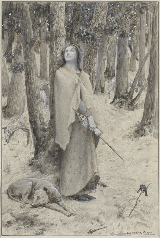 Merson's depiction of Joan of Arc is notable for its attention to historical detail and emotional depth. The artist's choice to focus on the moment of divine revelation rather than her later military exploits or martyrdom highlights the spiritual foundation of Joan's mission. This approach aligns with the 19th-century Romantic fascination with individual heroism and the supernatural.