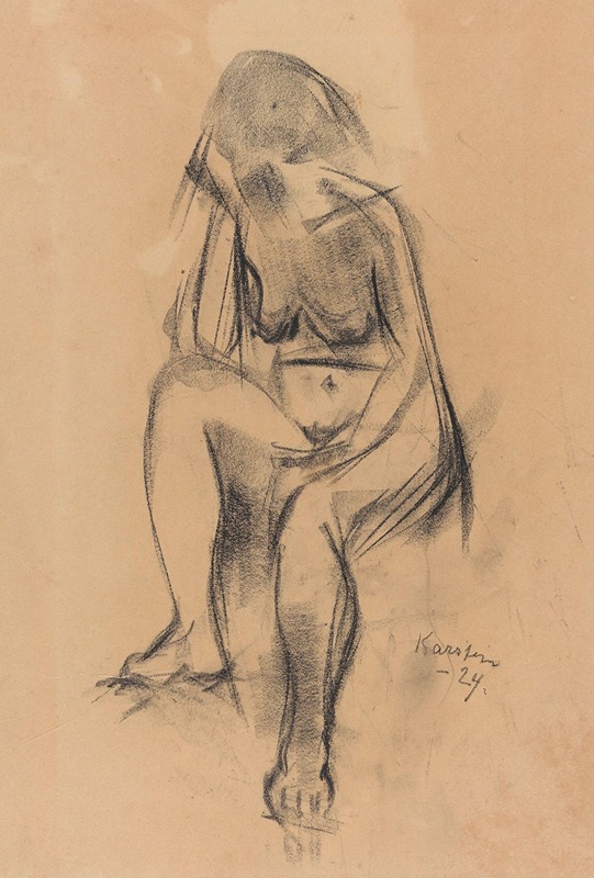 "Sittende akt" reflects Karsten's interest in capturing the essence of his subjects rather than adhering to strict realism. The painting's composition and use of color demonstrate his skill in creating a sense of movement and life within the static medium of paint. The figure's pose and expression suggest a moment of introspection, inviting the viewer to consider the inner life of the subject.