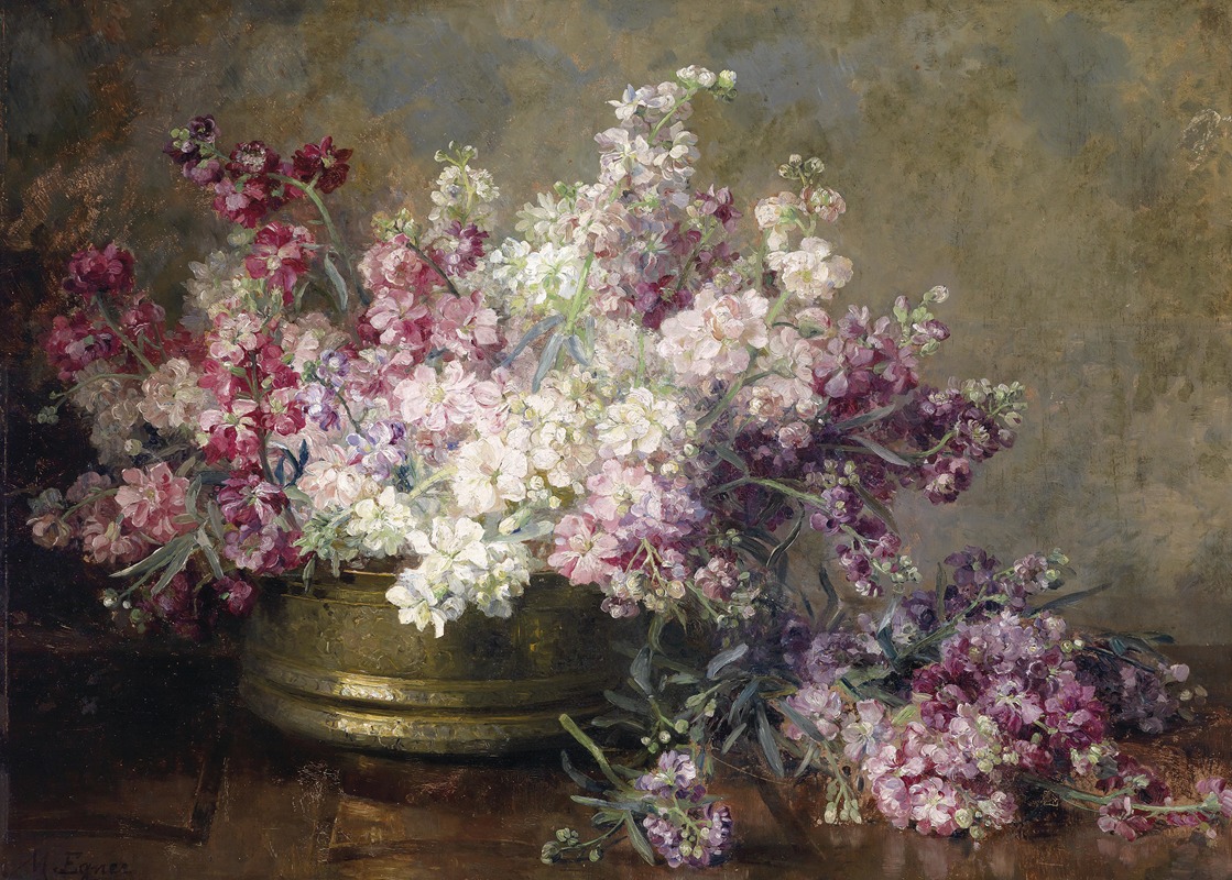 Marie Egner (1850–1940) was an Austrian painter known for her contributions to the floral still life genre and her involvement in the Viennese art scene during the late 19th and early 20th centuries. One of her notable works, Schale mit Blumen (translated as "Bowl with Flowers"), exemplifies her skill in capturing the delicate beauty of nature through her precise and detailed brushwork.