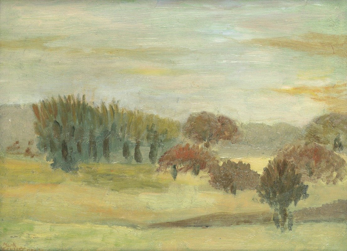 The painting "Trees at Banchory Sanatorium, Scotland" was created during a period when Gertler was exploring landscapes and the natural environment. Banchory Sanatorium, located in Scotland, was a medical facility known for treating tuberculosis patients. During the early 20th century, sanatoriums were often situated in rural or scenic locations, as fresh air and a tranquil environment were considered beneficial for patients' recovery.
