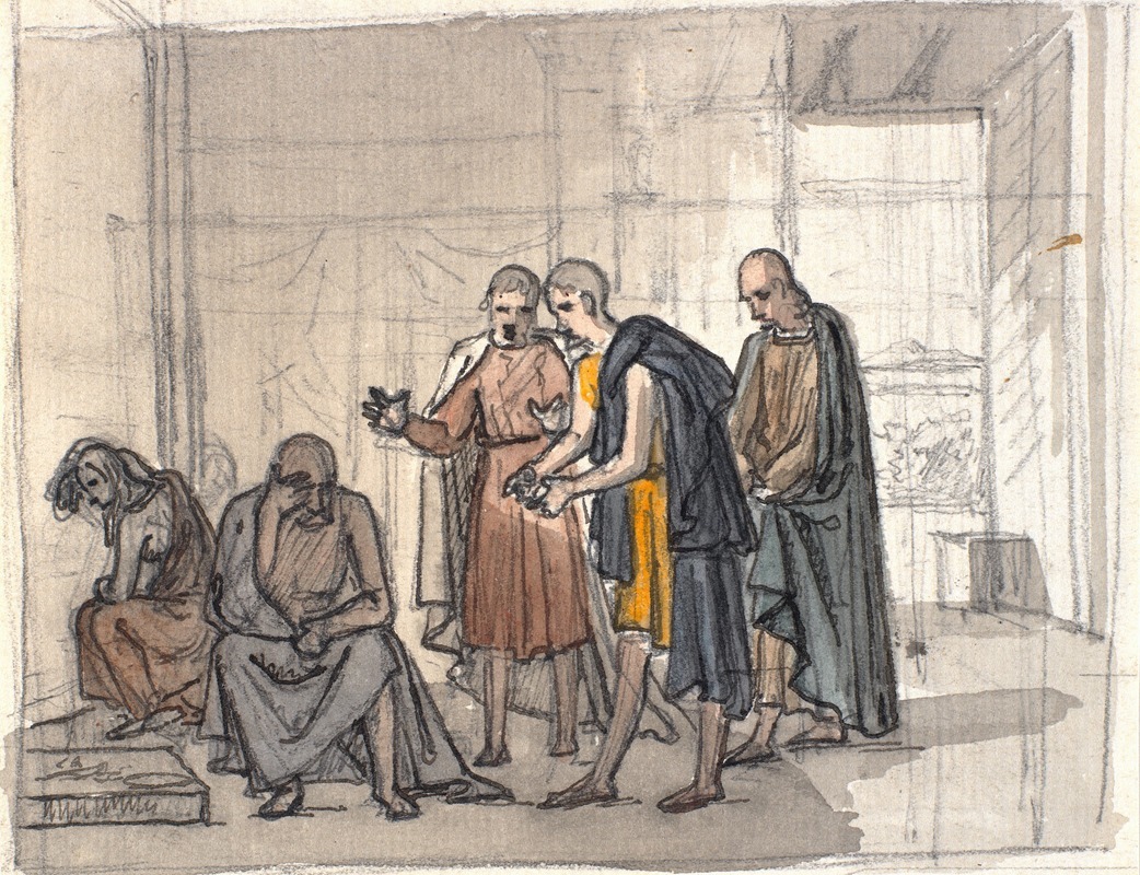 In terms of composition, Rørbye's work is characterized by its attention to detail and the use of light and shadow to enhance the emotional impact of the scene. His ability to portray the expressions and body language of Job and his friends adds depth to the narrative, inviting viewers to engage with the psychological and emotional dimensions of the story. The painting reflects the influence of Rørbye's travels and studies, particularly his exposure to the works of other European masters, which helped him develop a style that was both personal and reflective of broader artistic trends of his time.