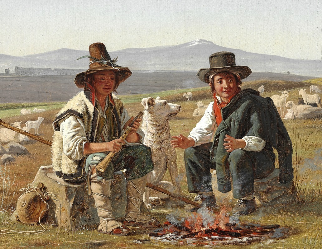 The painting, created in 1833, is a fine example of Rørbye's ability to capture the essence of his subjects and their environment. It portrays two young shepherd boys seated by a fire, likely in an Italian rural setting. This work reflects Rørbye's interest in capturing the lives of ordinary people, a theme common in his oeuvre. The choice of Italian shepherds as subjects is indicative of Rørbye's travels and the influence of his experiences abroad on his art.