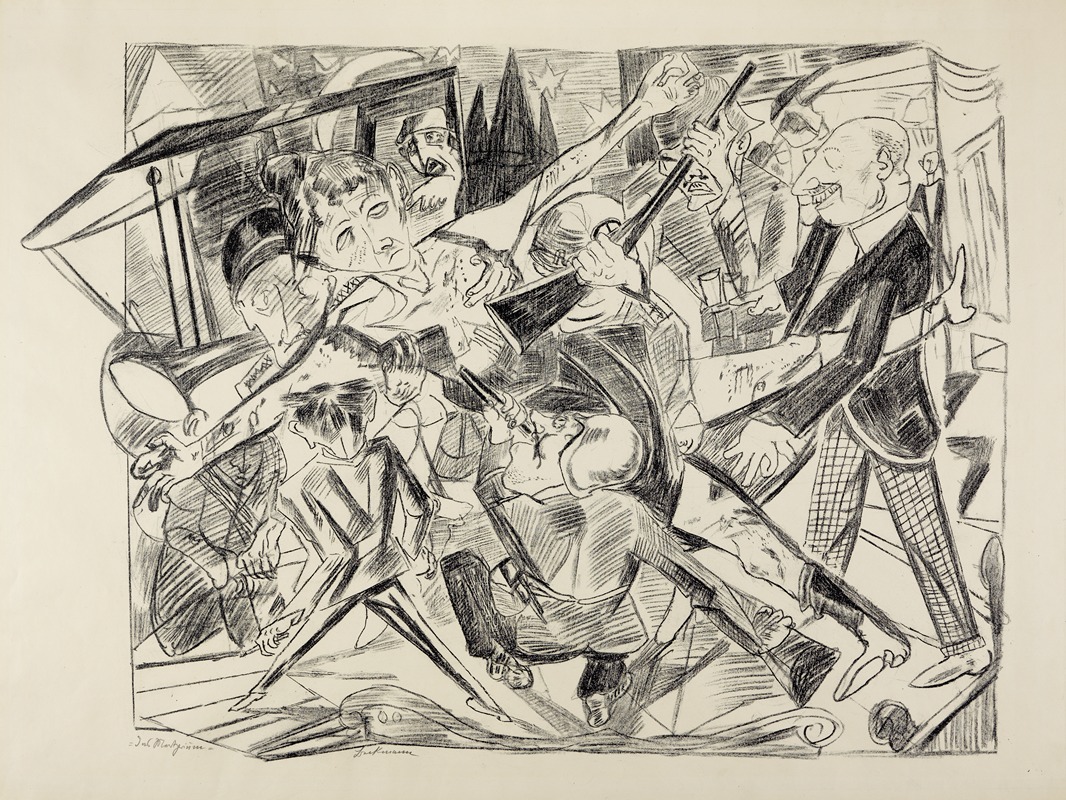 Beckmann's style during this period was heavily influenced by his personal experiences and the broader socio-political context. Having served as a medical orderly during World War I, Beckmann was deeply affected by the horrors of war, which left a lasting impact on his artistic vision. His paintings frequently depict scenes of chaos, violence, and the struggle for survival, often using religious iconography to draw parallels between historical martyrdom and contemporary suffering.