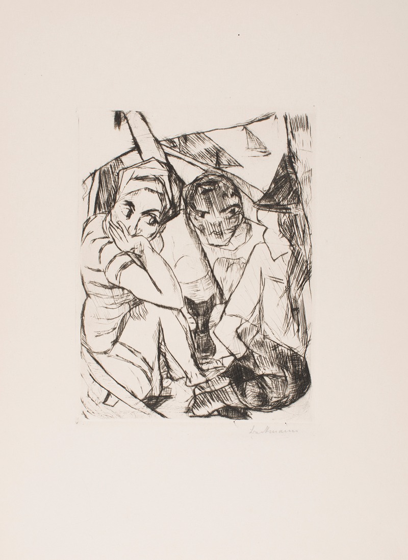 "The Duchess" portfolio, which includes "First Illustration for Chapter 1," was produced during a period when Beckmann was deeply engaged in exploring themes of human experience, societal roles, and existential inquiry. This period followed the traumatic experiences of World War I, which had a profound impact on Beckmann's artistic vision. His work from this era often delves into the psychological and emotional depths of his subjects, offering a window into the human condition.