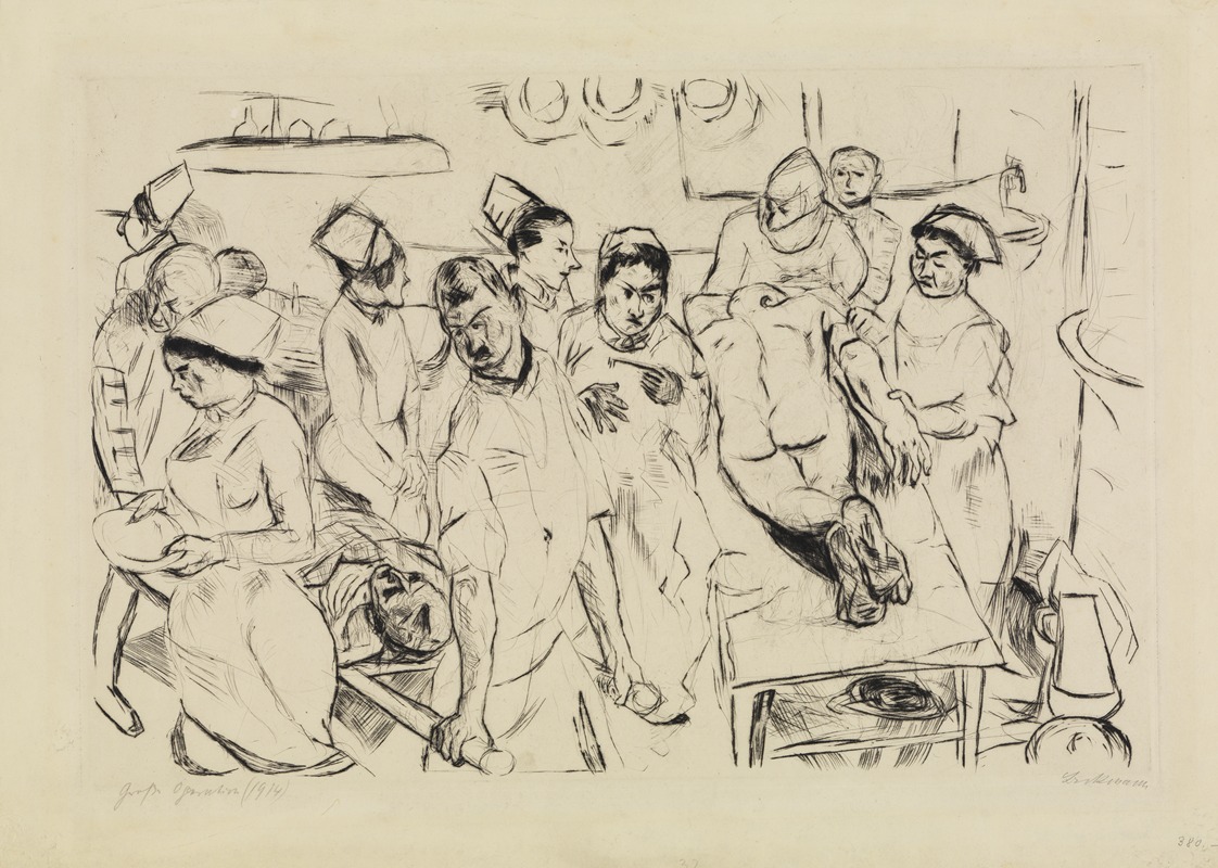 Max Beckmann was a prominent German painter, draftsman, printmaker, and sculptor, associated with the New Objectivity movement, which emerged in Germany in the aftermath of World War I. His work is known for its bold colors, expressive style, and often complex, symbolic subject matter. One of his notable works is "Große Operation" (The Large Operation), which reflects Beckmann's engagement with the themes of human suffering and existential inquiry.