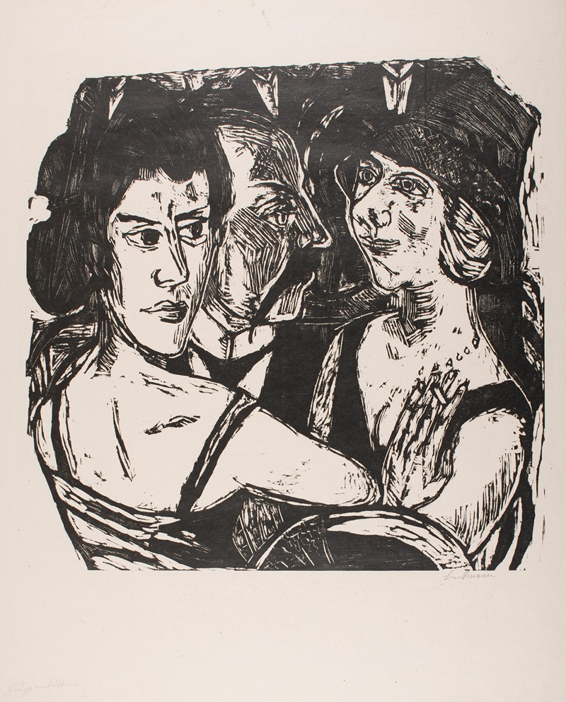 The artwork depicts a scene in the Eden Bar, a well-known establishment in Amsterdam. Beckmann had fled to Amsterdam in 1937 after the Nazi regime in Germany labeled his work as "degenerate art." During his time in Amsterdam, he created several works that captured the atmosphere of urban nightlife, often using bars and cabarets as settings to explore themes of human interaction and existential tension. Group Portrait, Eden Bar is one such example, showcasing a group of individuals in a confined, theatrical space.