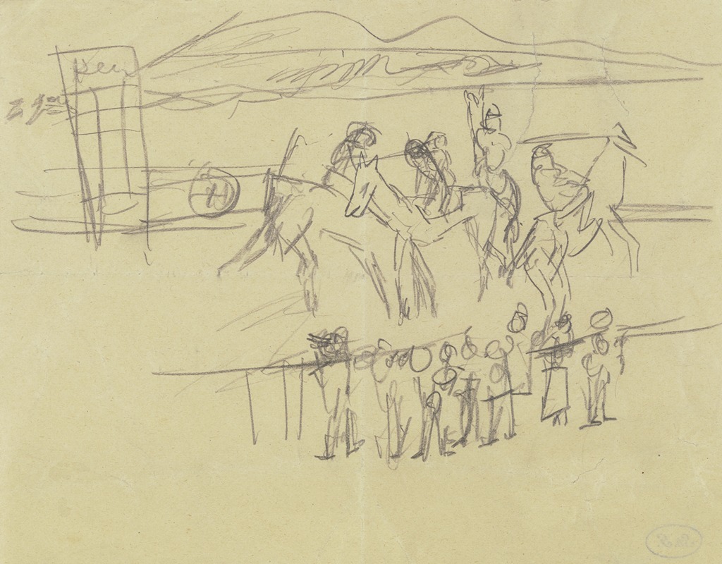 Beckmann frequently drew inspiration from urban life, entertainment, and the human condition, and horse racing was a popular subject in modern art during the early 20th century. The painting likely reflects his broader interest in the interplay between human activity and existential themes. However, without specific documentation or commentary from Beckmann himself, the exact motivations or interpretations behind "Horse Racing" remain unclear.