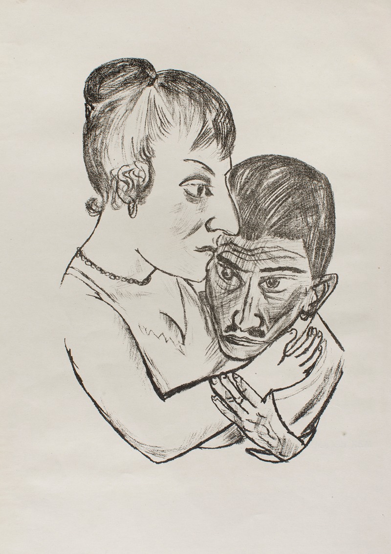 "Lovers" was created during a period when Beckmann was exploring themes of human relationships, identity, and existential inquiry. His works from this era often depict intimate scenes that are imbued with psychological tension and a sense of mystery. Beckmann's style is characterized by bold lines, dramatic contrasts, and a vivid color palette, all of which contribute to the emotional intensity of his paintings.