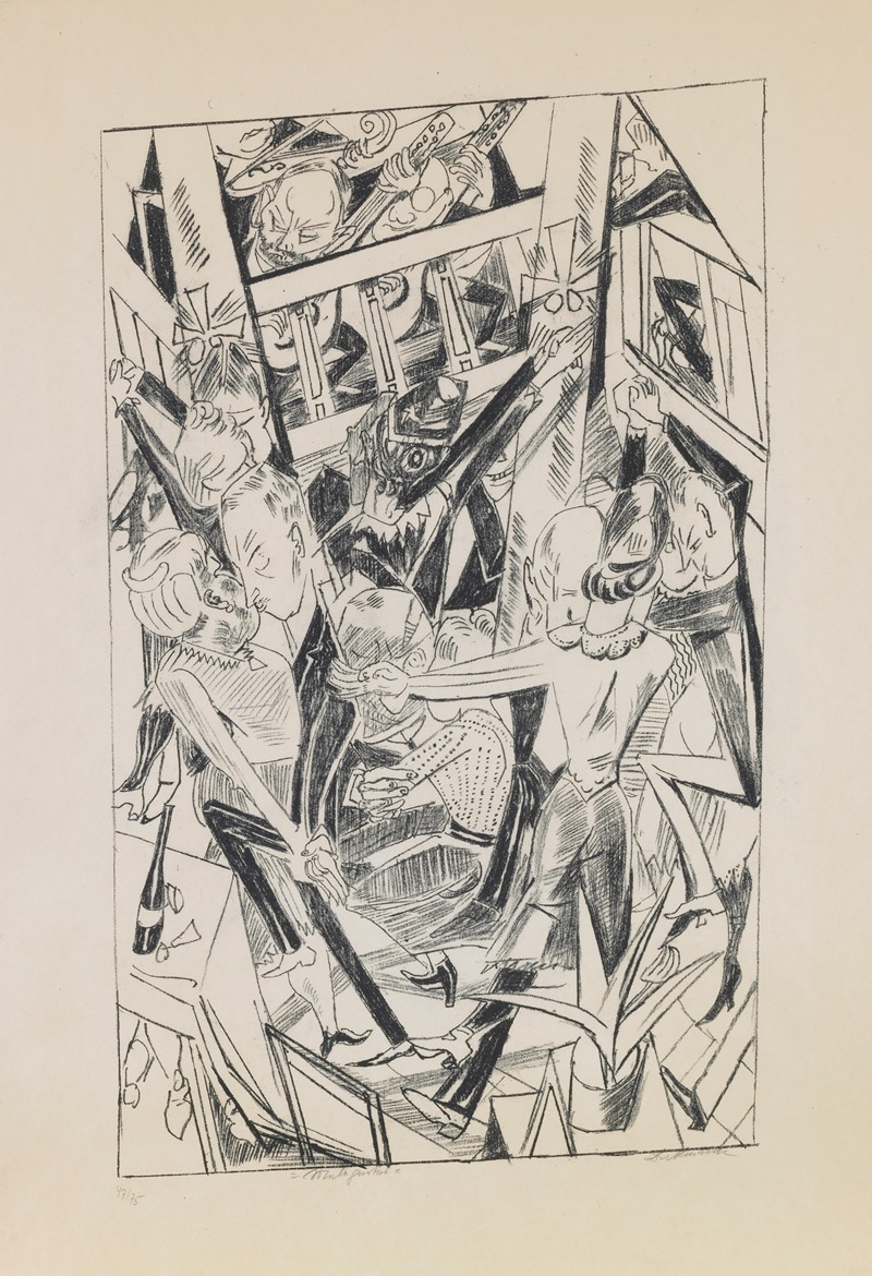 In summary, "Plate 8; Malepartus" by Max Beckmann is a significant piece within the artist's oeuvre, reflecting his unique style and the historical context of its creation. The work embodies Beckmann's exploration of human nature and societal issues, rendered through his masterful use of lithography.