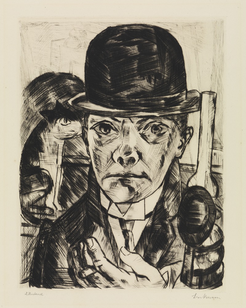 Today, Max Beckmann is celebrated as one of the most important artists of the 20th century, and his works are held in major collections around the world. "Selbstbildnis mit steifem Hut" is a significant piece within his oeuvre, offering insight into the artist's self-examination and his engagement with the cultural and social issues of his time.