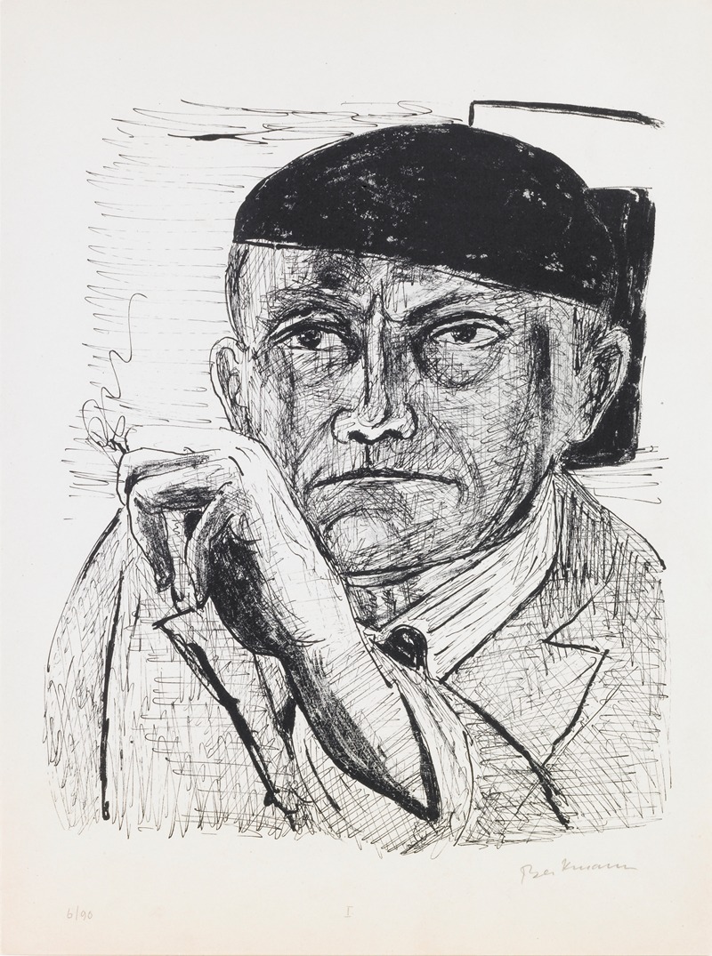 A hand-painted replica of Max Beckmann’s masterpiece Self Portrait, plate 1 from the portfolio ‘Day and Dream’, meticulously crafted by professional artists to capture the true essence of the original. Each piece is created with museum-quality canvas and rare mineral pigments, carefully painted by experienced artists with delicate brushstrokes and rich, layered colors to perfectly recreate the texture of the original artwork. Unlike machine-printed reproductions, this hand-painted version brings the painting to life, infused with the artist’s emotions and skill in every stroke. Whether for personal collection or home decoration, it instantly elevates the artistic atmosphere of any space.