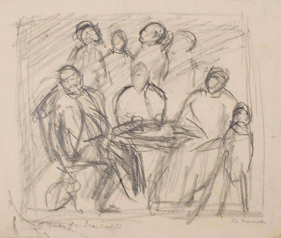 The sketch is notable for its composition and use of space. Beckmann often arranged his figures in a way that suggests both connection and isolation, a reflection of the dual nature of family dynamics. The figures in the sketch are rendered with a sense of immediacy and raw emotion, highlighting Beckmann's ability to convey depth and intensity through minimal means.