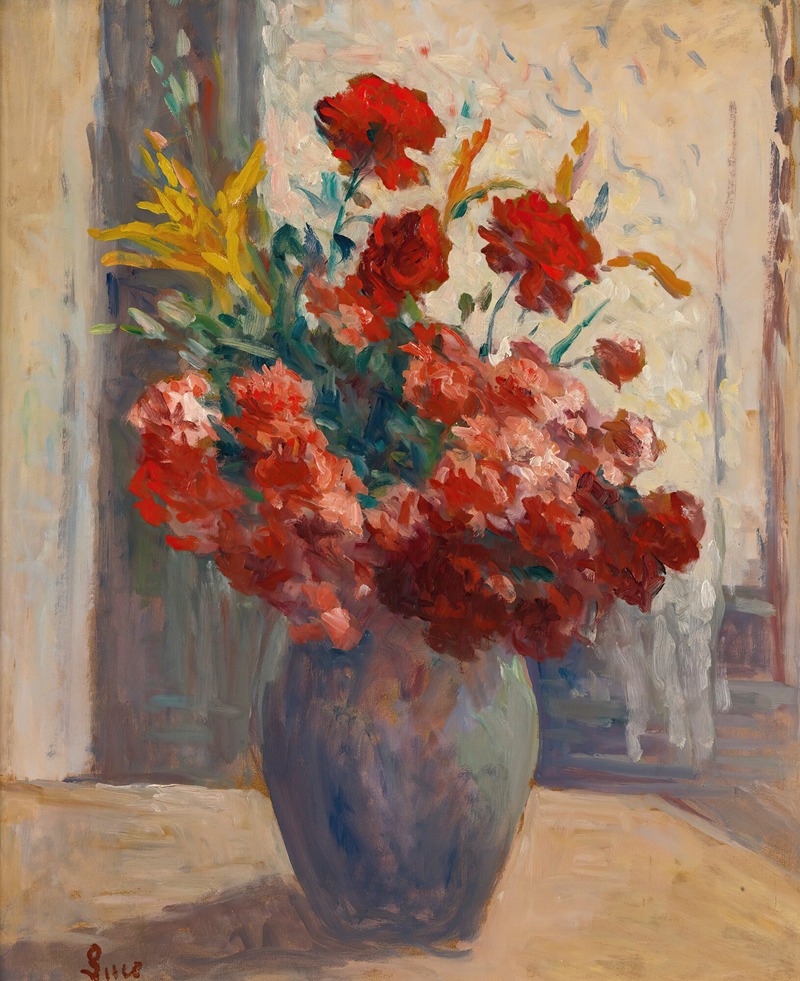 Luce's choice of subject matter—a simple bouquet of flowers—reflects a common theme in art history, where still life paintings have been used to explore the beauty of everyday objects. In "Bouquet De Fleurs Dans Un Vase," Luce elevates this traditional subject through his innovative use of color and technique, inviting viewers to appreciate the subtleties of light and shadow.