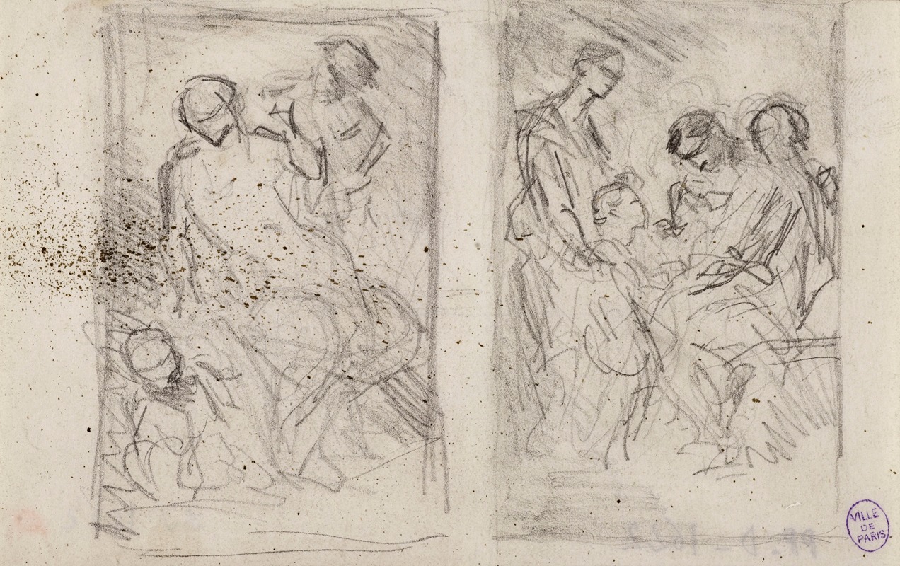 In summary, "Deux esquisses pour des compositions" by Narcisse-Virgile Diaz de la Peña exemplifies the artist's dedication to capturing the natural world through expressive sketches. While specific information about these particular sketches is scarce, they are consistent with his broader body of work, which continues to be appreciated for its contribution to the development of landscape painting in the 19th century.