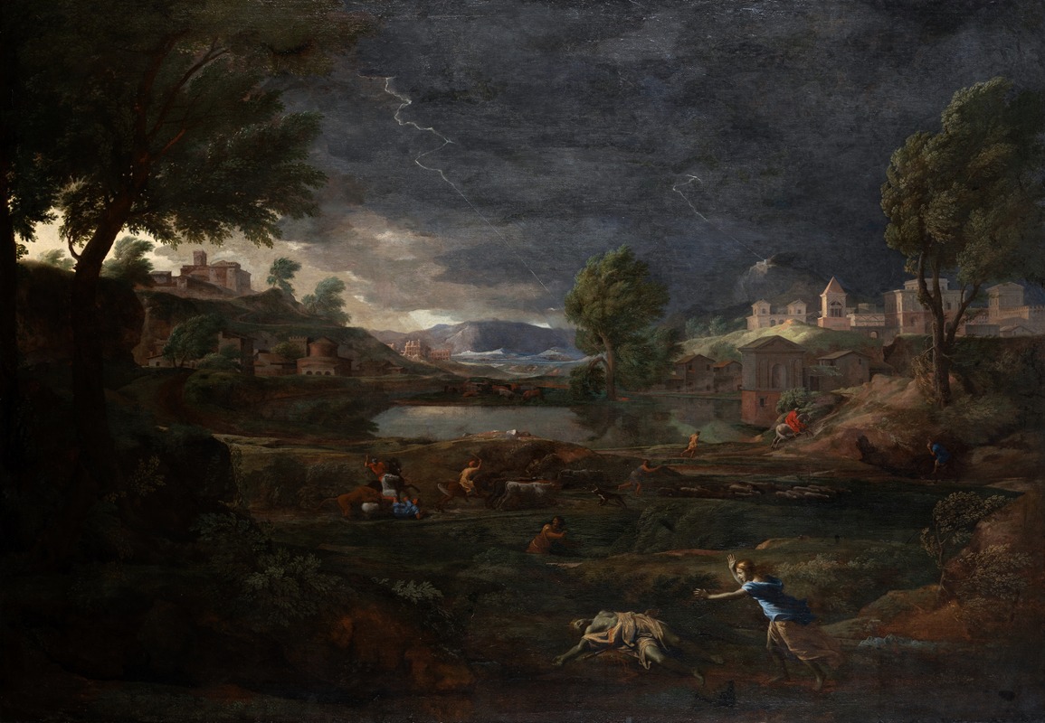 Landscape during a Thunderstorm with Pyramus and Thisbe remains an important piece in Poussin's oeuvre and is celebrated for its dramatic intensity and sophisticated integration of mythological storytelling with the natural world.
