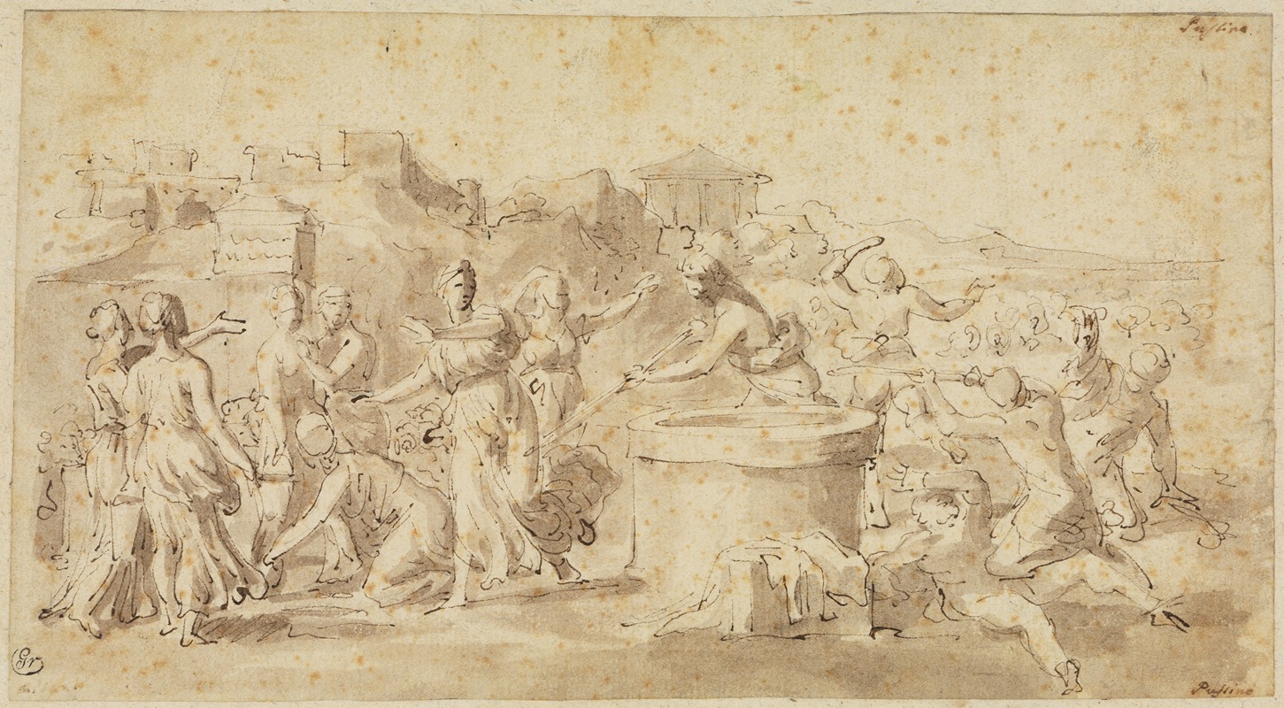 Nicolas Poussin, a prominent French painter of the 17th century, is renowned for his classical style and his influence on the development of French Baroque art. One of his notable works is "Moses Defending the Daughters of Jethro" (French: "Moïse défendant les filles de Jethro"), which exemplifies his mastery in depicting biblical scenes with clarity and dramatic intensity.