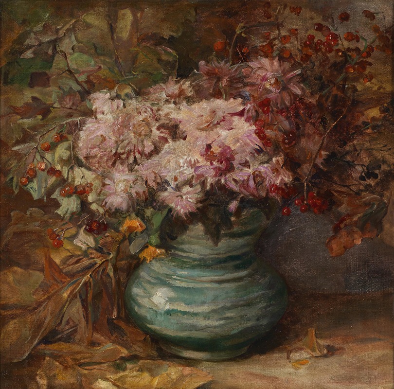 "Blumenstrauß mit Chrysanthemen und Ringelblumen" remains a testament to Olga Wisinger-Florian's skill and vision as an artist. It reflects her deep appreciation for the natural world and her ability to translate that appreciation into works of art that continue to resonate with audiences today. Her paintings are held in high regard and are part of various public and private collections, serving as enduring reminders of her contributions to the Impressionist movement and the broader art world.