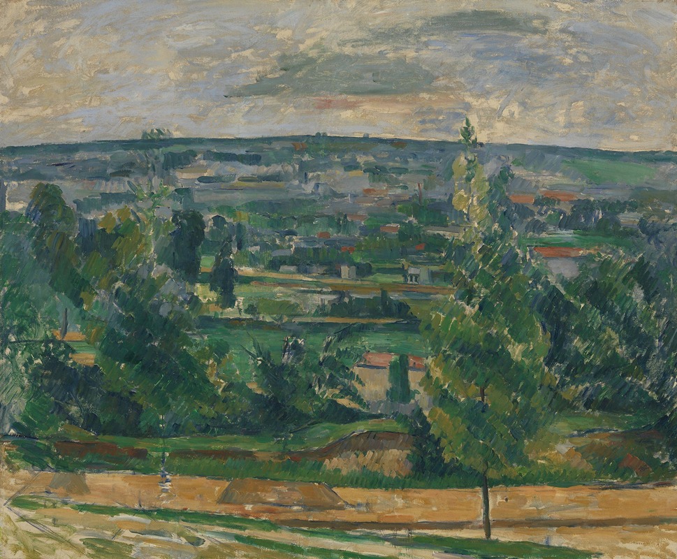 This painting exemplifies Cézanne's innovative approach to landscape painting, which sought to move beyond the naturalistic representation of the Impressionists. Instead, Cézanne focused on capturing the underlying structure and geometry of the scene. His use of bold brushstrokes and a carefully considered palette demonstrates his interest in exploring the interplay between color, form, and perspective. In "Landscape from Jas de Bouffan," Cézanne employs these techniques to depict the natural beauty of the estate, emphasizing the harmony between the built environment and the surrounding countryside.