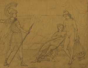 Studienblatt; Frau mit Hut und Skizze einer Bilderwand