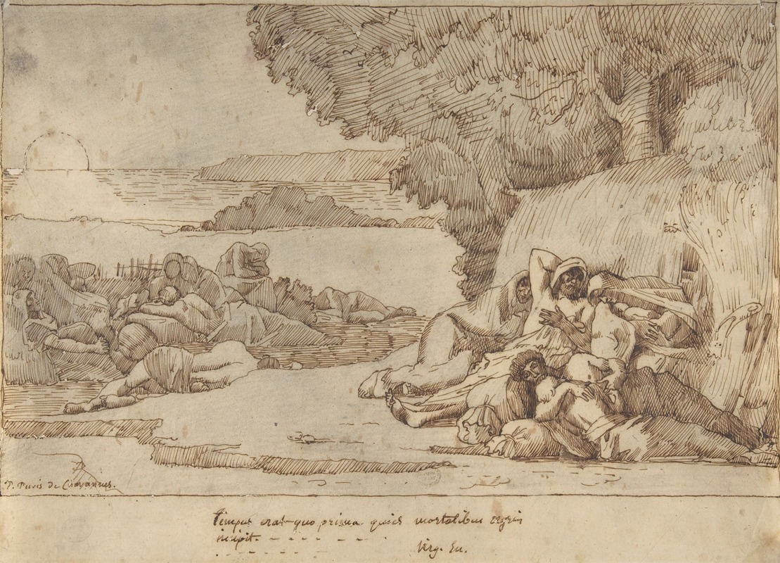 Puvis de Chavannes was born on December 14, 1824, in Lyon, France. He initially pursued a career in engineering but later shifted his focus to painting, studying under several artists including Eugène Delacroix and Thomas Couture. His work is characterized by its serene and contemplative qualities, often depicting allegorical and mythological subjects.