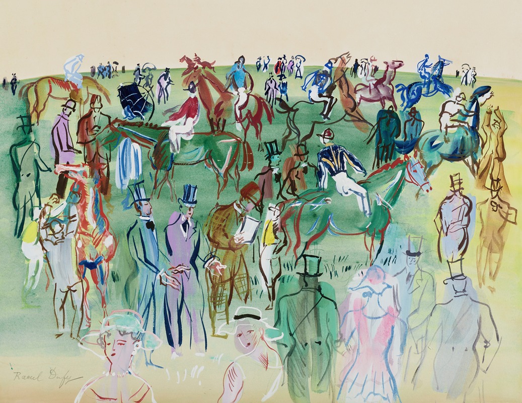 Raoul Dufy (1877–1953) was a French Fauvist painter known for his colorful and decorative style, which often depicted leisure activities and scenes of social life. One of his works, "La Pelouse," exemplifies his vibrant approach to capturing the essence of outdoor leisure scenes.