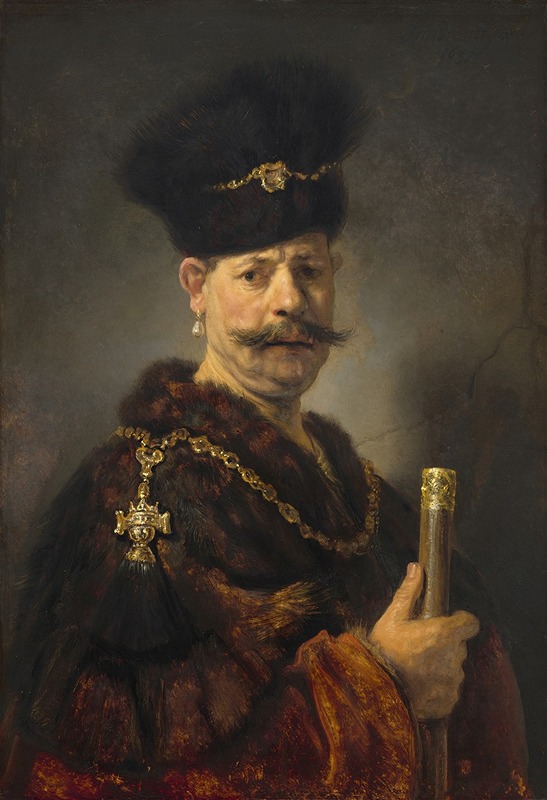 The painting depicts a man dressed in what appears to be traditional Polish noble attire, which includes a fur-trimmed robe and a distinctive hat. The subject's identity remains unknown, and there has been much speculation over the years regarding who he might be. Some art historians have suggested that the man could be a member of the Polish nobility, while others believe he might be a model dressed in Polish costume, a common practice in portraiture of that era.
