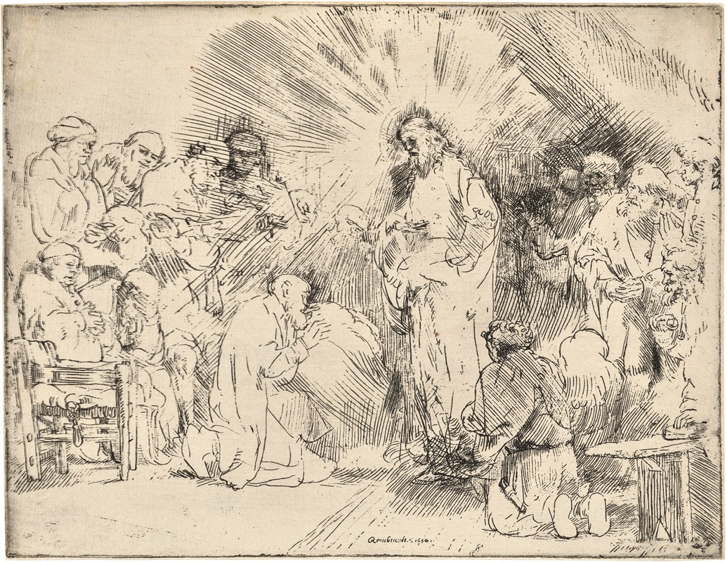 A hand-painted replica of Rembrandt van Rijn’s masterpiece Christ appearing to the Apostles, meticulously crafted by professional artists to capture the true essence of the original. Each piece is created with museum-quality canvas and rare mineral pigments, carefully painted by experienced artists with delicate brushstrokes and rich, layered colors to perfectly recreate the texture of the original artwork. Unlike machine-printed reproductions, this hand-painted version brings the painting to life, infused with the artist’s emotions and skill in every stroke. Whether for personal collection or home decoration, it instantly elevates the artistic atmosphere of any space.