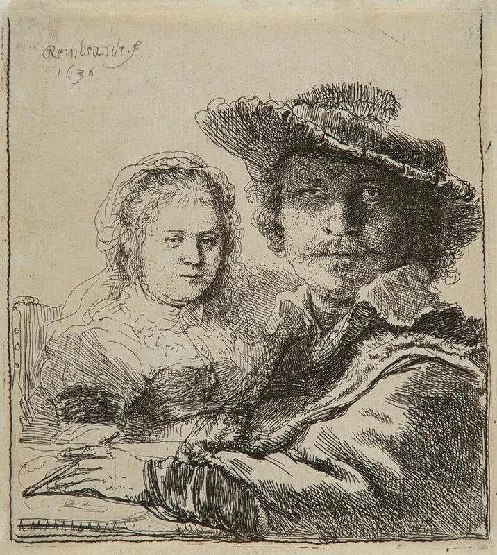 This etching is also significant in the context of Rembrandt's broader body of work. It reflects his interest in self-representation and his exploration of personal identity, themes that recur throughout his career. Additionally, the inclusion of Saskia highlights the importance of their relationship, which had a profound influence on his life and art. Saskia was not only his wife but also a frequent model for his works during their time together.
