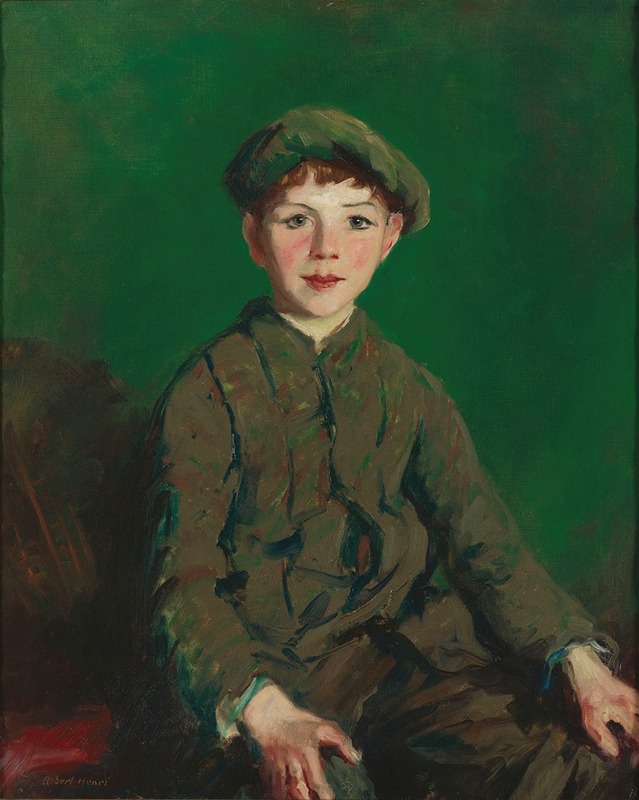 "Irish Lad" is characterized by its vibrant use of color and dynamic composition. The boy is portrayed with a direct gaze, engaging the viewer with a sense of immediacy and presence. Henri's loose, energetic brushstrokes and the warm, earthy tones of the painting contribute to its lively and intimate quality. The background is kept simple, ensuring that the focus remains on the boy's face and expression.