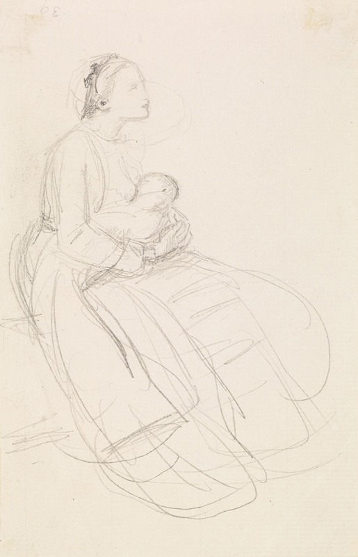 The drawing likely reflects Millais's interest in the themes of motherhood and childhood, which were recurrent in his oeuvre. During the Victorian era, such subjects were popular, as they resonated with the period's ideals of family and domesticity. Breastfeeding, in particular, was seen as a natural and nurturing act, embodying the bond between mother and child. Millais's depiction of this intimate moment would have aligned with the Victorian celebration of motherhood as a woman's highest calling.