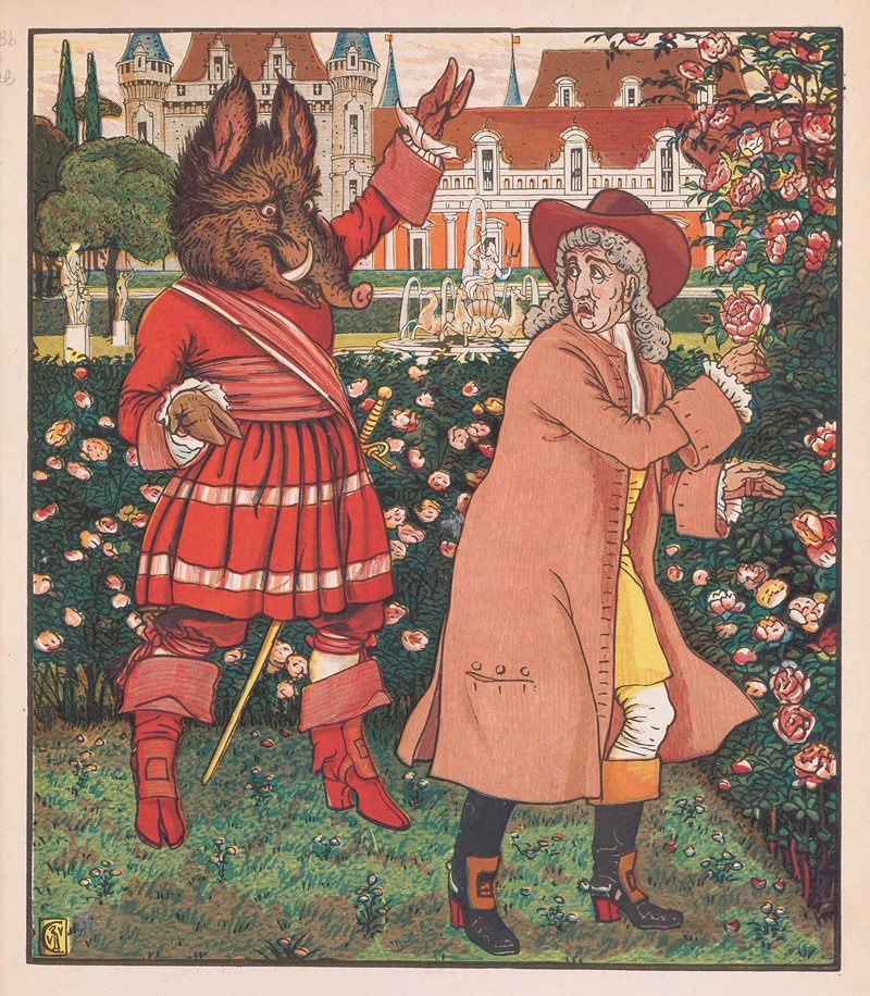 Walter Crane's "Beauty and the Beast Pl. 01" is an illustration created by the renowned English artist and book illustrator Walter Crane (1845–1915). Crane was a prominent figure in the Arts and Crafts Movement and is celebrated for his contributions to children's book illustrations and decorative arts. This particular work is part of a series of illustrations for the fairy tale "Beauty and the Beast," which was included in Crane's collection of illustrated stories.