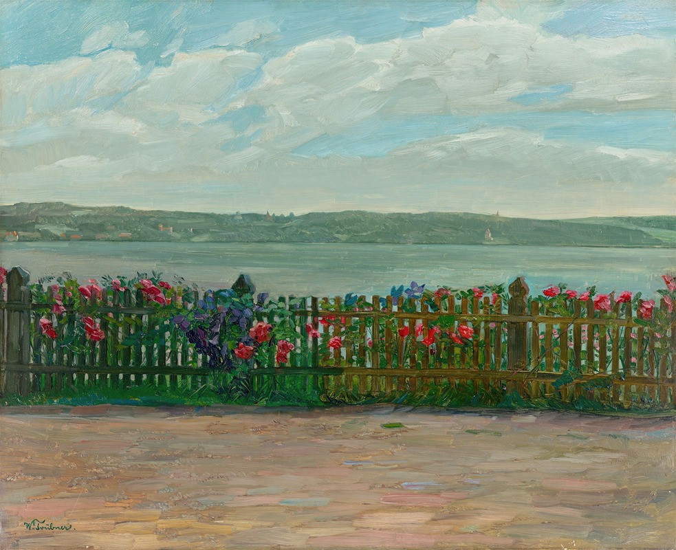 Overall, "Rose Fence with View of the Berg Castle at Lake Starnberg" is a significant work within Wilhelm Trübner's oeuvre, demonstrating his skill in landscape painting and his contribution to the Realist movement in Germany. The painting remains an important piece for understanding the intersection of art, history, and nature in the late 19th century.