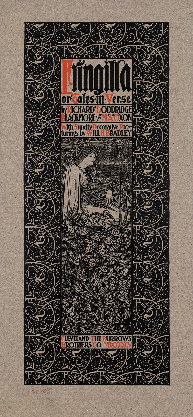 "Fringilla, or Tales in Verse" is an illustrated book by the American artist and designer Will Bradley, published in 1895. Will Bradley, born in 1868, was a prominent figure in the American Arts and Crafts Movement and is often referred to as the "Dean of American Designers." His work is characterized by its innovative use of typography, illustration, and layout, which were heavily influenced by the Art Nouveau and Aesthetic movements.
