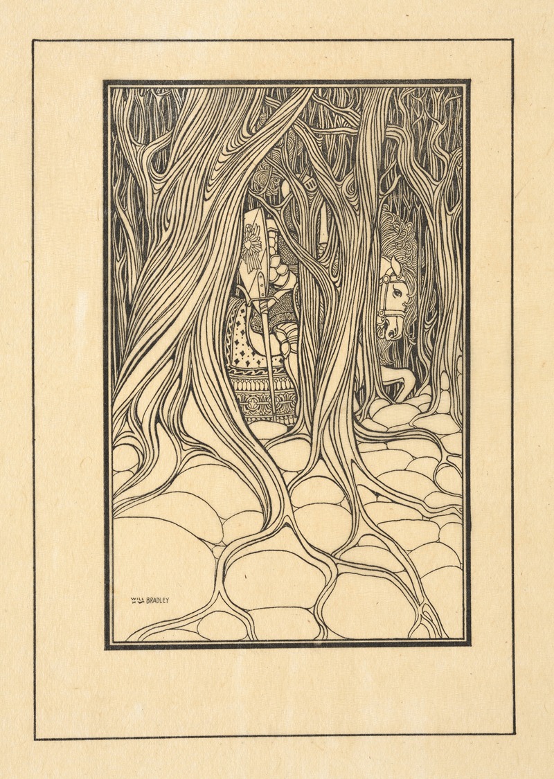 Will Bradley's contributions to graphic design and illustration were significant during his career. He worked as an illustrator for various magazines and publications, and his work was widely admired for its elegance and sophistication. "The Dolorous Knight" remains an important example of his talent and continues to be appreciated by art enthusiasts and historians.