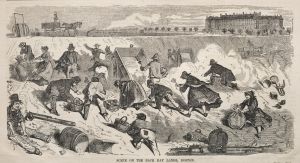 President Lincoln, General Grant, and Tad Lincoln at a Railway Station