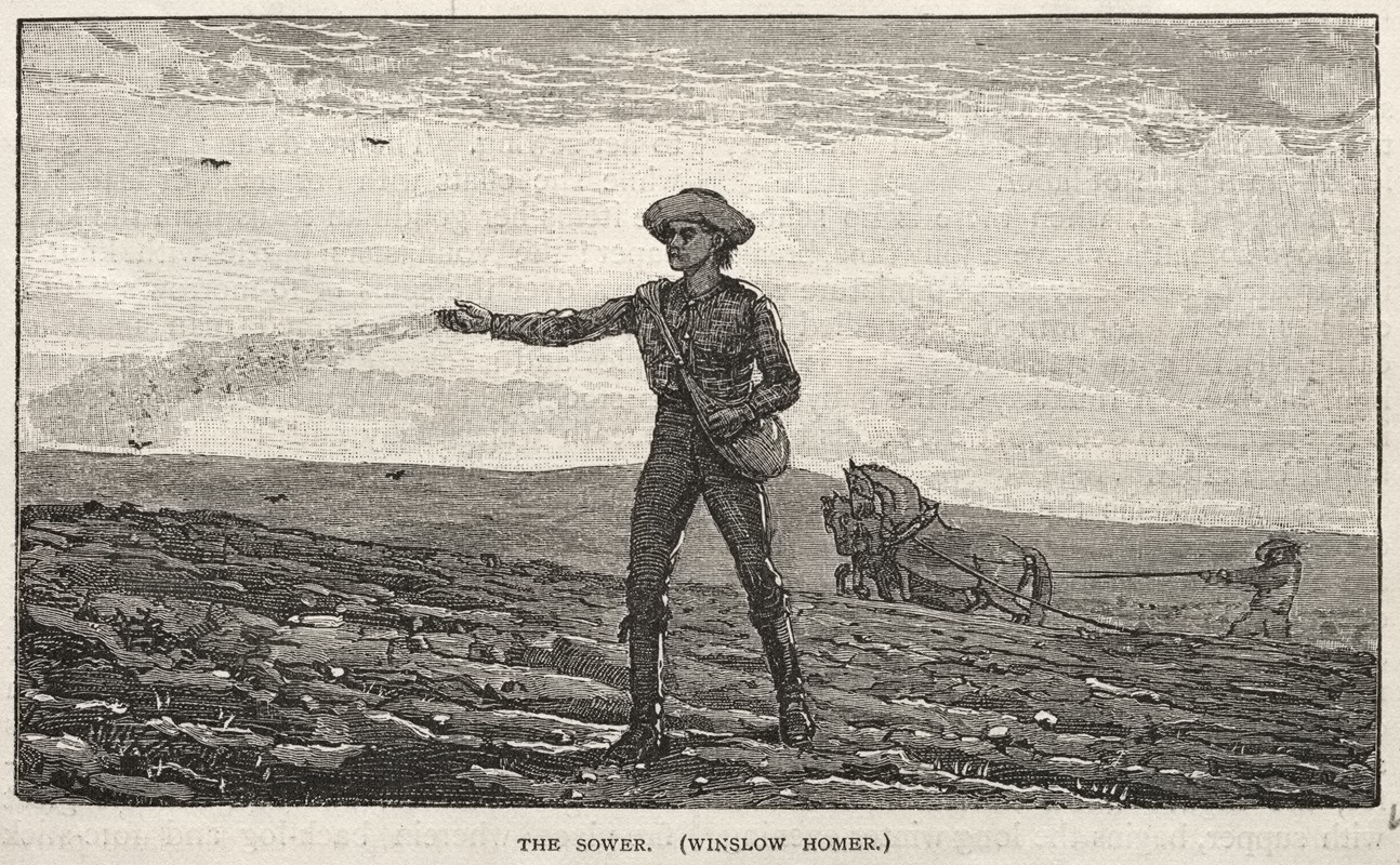 Homer's The Sower is notable for its simplicity and directness, emphasizing the physical act of sowing rather than embellishing the scene with unnecessary details. The figure is dressed in work clothes, and the surrounding landscape is rendered with loose, fluid brushstrokes characteristic of Homer’s watercolor technique. The painting captures a moment of quiet industry, with the sower's movement suggesting both purpose and rhythm. The muted color palette and naturalistic tones contribute to the work's grounded and contemplative atmosphere.